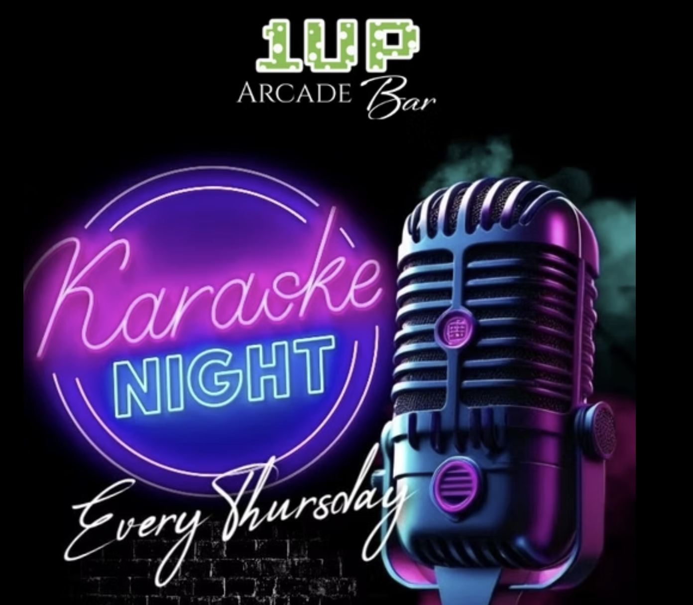 Join us for Karaoke night every Thursday from 8-11pm at 1Up Arcade Bar in Farmington. Bring your friends and compete for the title of karaoke champ while enjoying a vibe you won't forget!