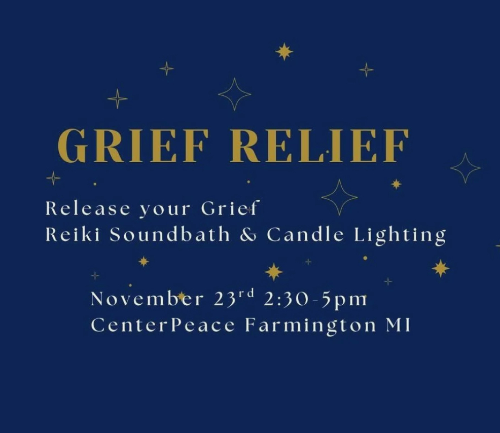 November 9th • 2:30–5:00 PM CenterPeace Farmington — 33750 Freedom Rd, Farmington, MI Hammock $65 | Cushy Mat or Anti-Gravity Chair $55 Loss changes us — but within the ache, there is sacred space for love to breathe again There is no shame in grief This is a safe space to feel, emote, maybe even...