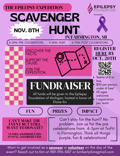 This is an exciting Fundraiser benefiting the Epilepsy Foundation of Michigan, held in honor of Eloise Kin. Eloise is the 2 year old daughter of Kim, who lives with epilepsy...